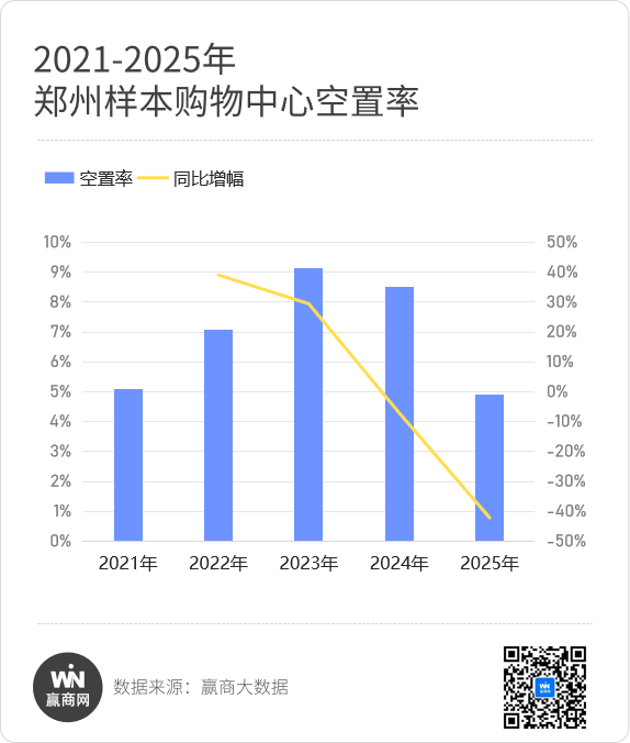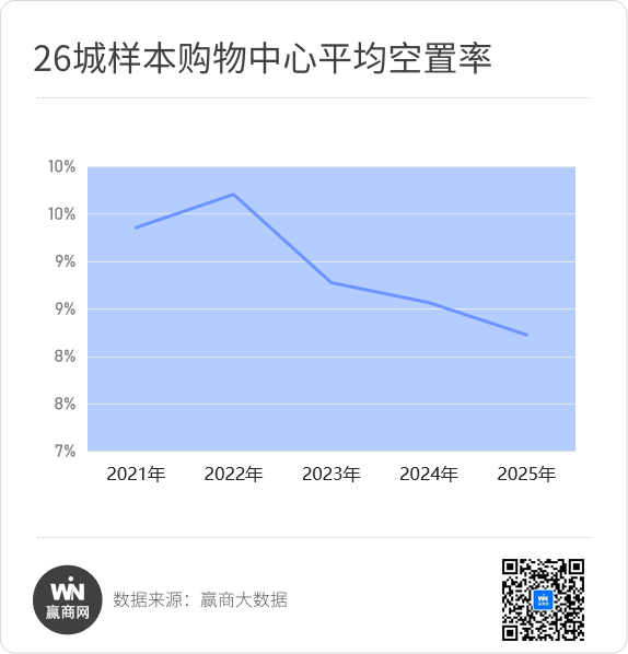 据赢商大数据监测,2025年,全国重点26城600+样本购物中心平均空置率,创下近五年新低。
