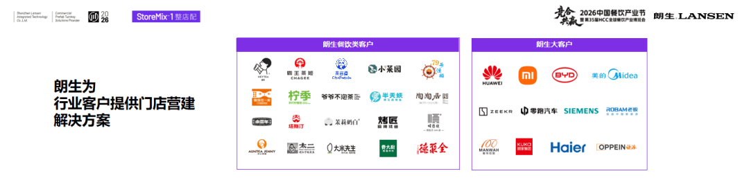 在餐饮领域,我们服务的对象涵盖了喜茶、霸王茶姬、茶百道、柠季等头部茶饮品牌,也包括陶陶居、烤匠等连锁正餐品牌。餐饮领域以外,朗生还服务华为、比亚迪、大疆等企业。截至目前,朗生已累计服务超100家上市公司,超1000家商业连锁品牌,具备十分成熟的商业空间定制与营建服务经验。