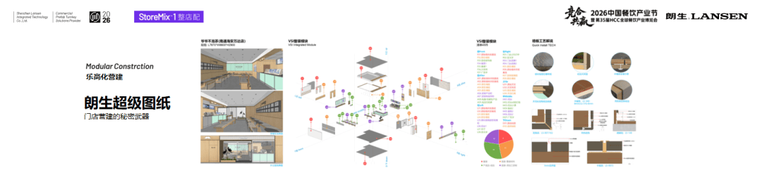 为了进一步帮助品牌实现效率突破,我们还有“超级图纸”。什么是朗生的“超级图纸”?举个例子,餐饮品牌要在美国开店,当地的装修人工成本,比产品成本还要高5倍,整体下来人工费用极高。而朗生的模块化解决方案,就像乐高式组装,普通人只要参照图纸就能在现场直接组装产品,彻底让装修变得简单化、产业化。