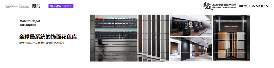 第三是“效率倍增”。传统品牌以SI体系实现品牌形象统一、快速开店。朗生则在此基础上升级了整店配模式,并首创VSI动态品牌空间理念。因为装修属于重资产投入,我们不建议餐饮品牌频繁整体重装,而是通过阶段性局部更新、调整实现品牌空间焕新,传递品牌价值。